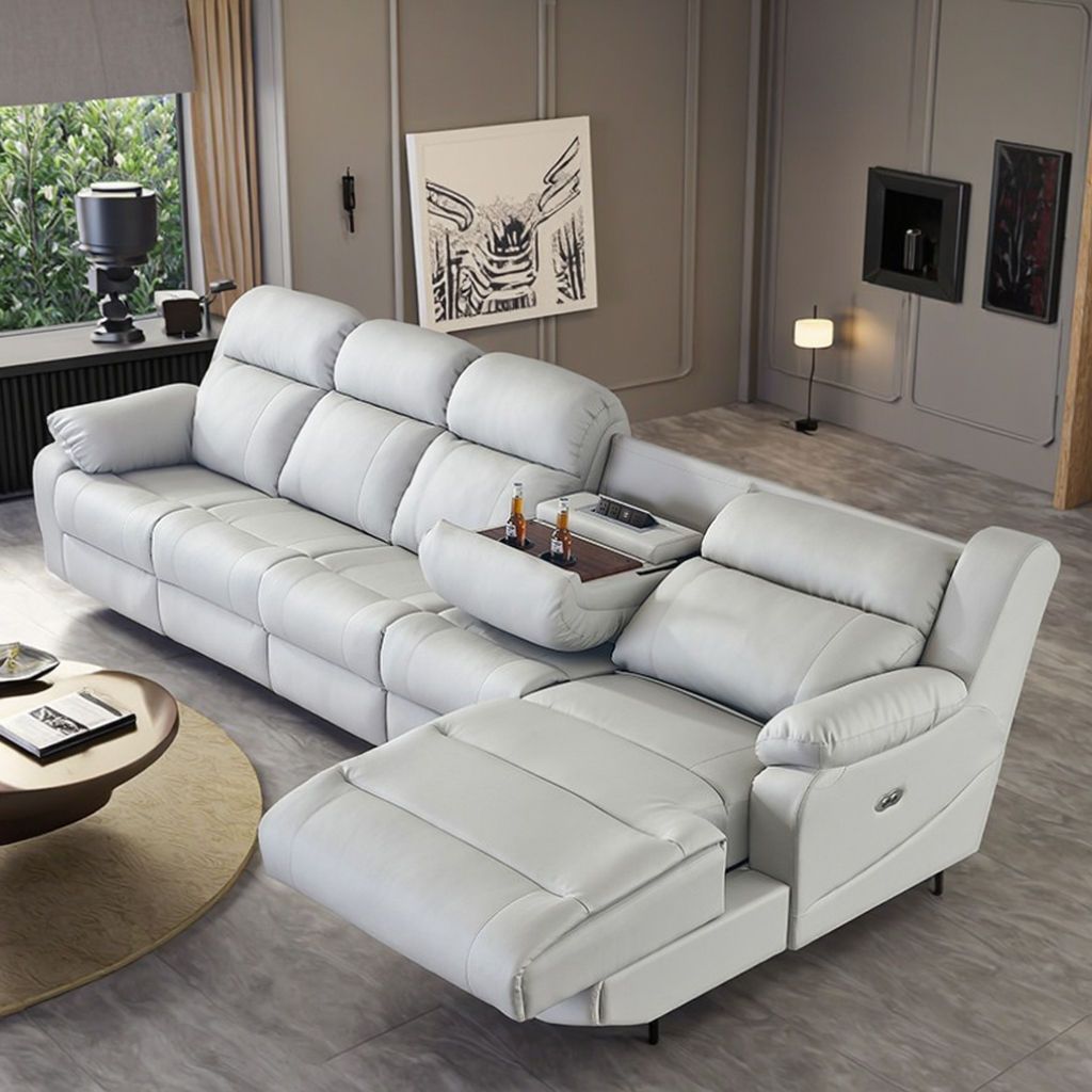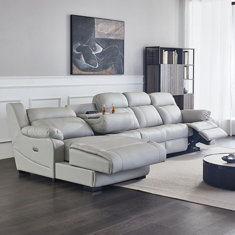 First-class Space Function Cabin Simple Modern Smart Living Room Corner Retractable First Layer Cowhide Electric Leather Sofa