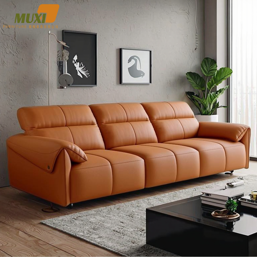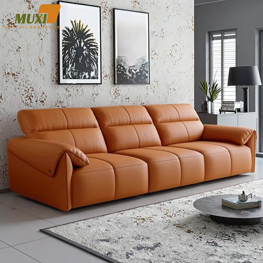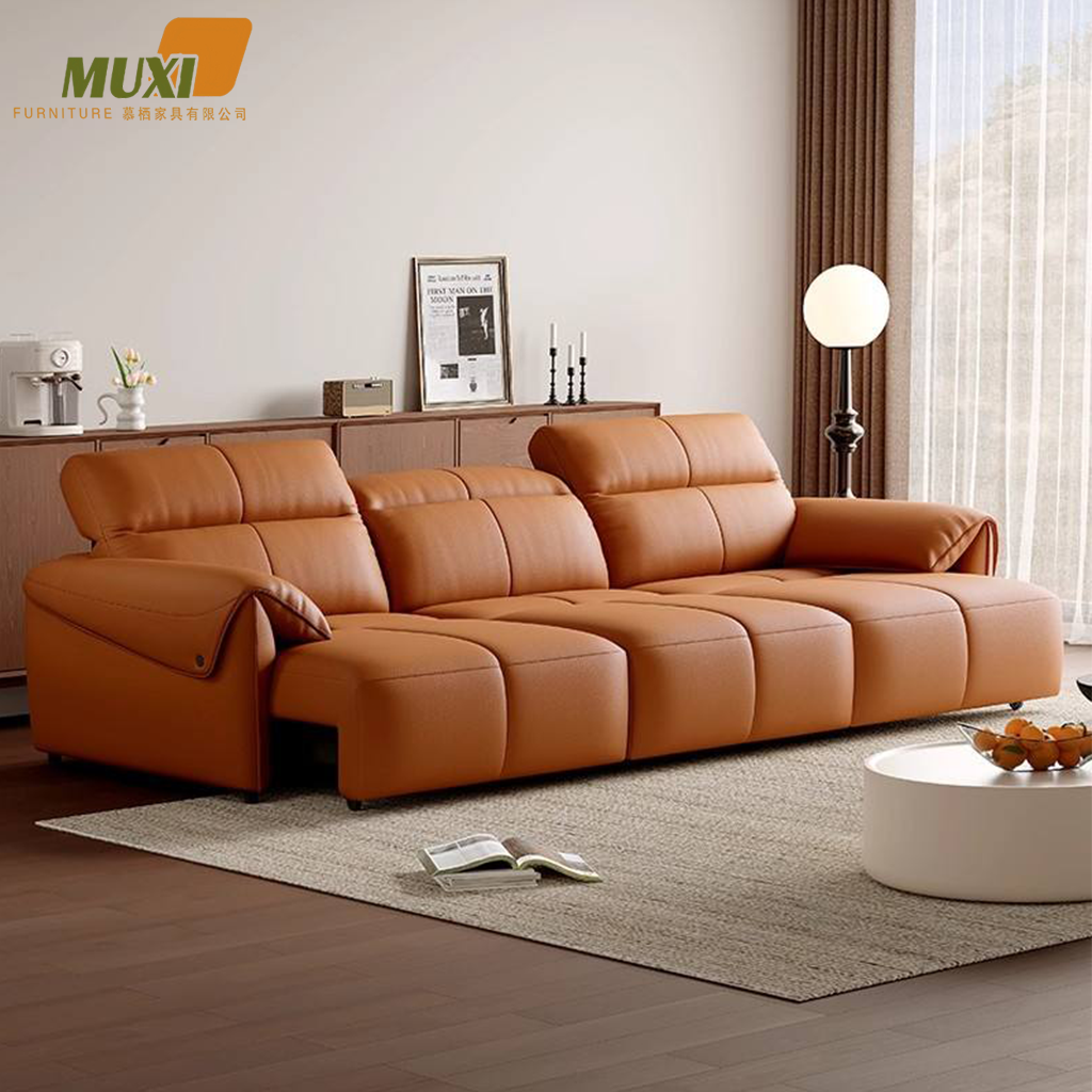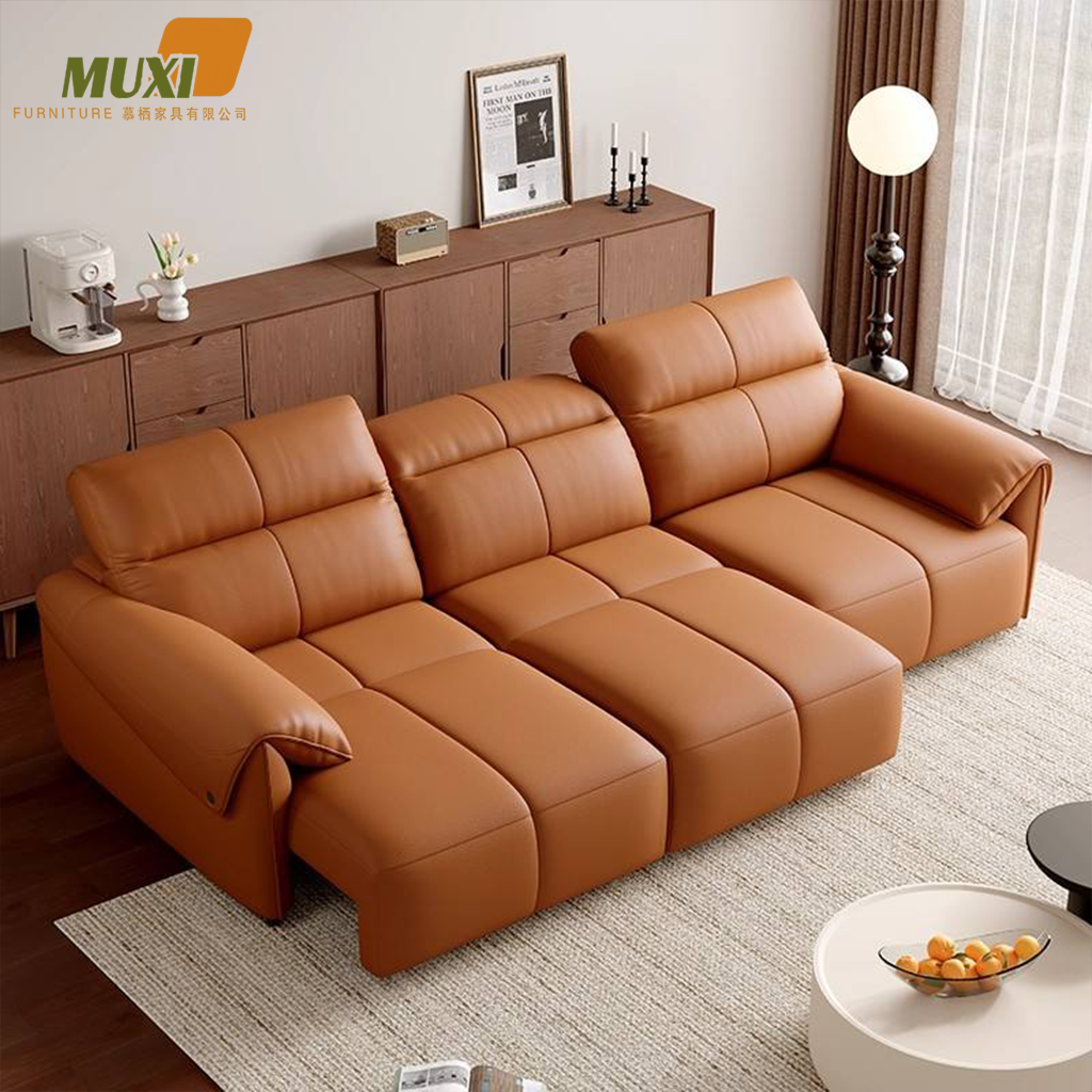 Luxury Modern Corner Furniture Custom Genuine Leather Modular Reclining Sofa Set Electric Recliner Extendable Foldable Massage