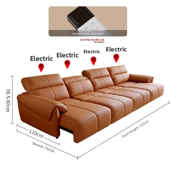 Modern electric recliner: adjustable, genuine leather material, perfect for home theater.Electric sofa